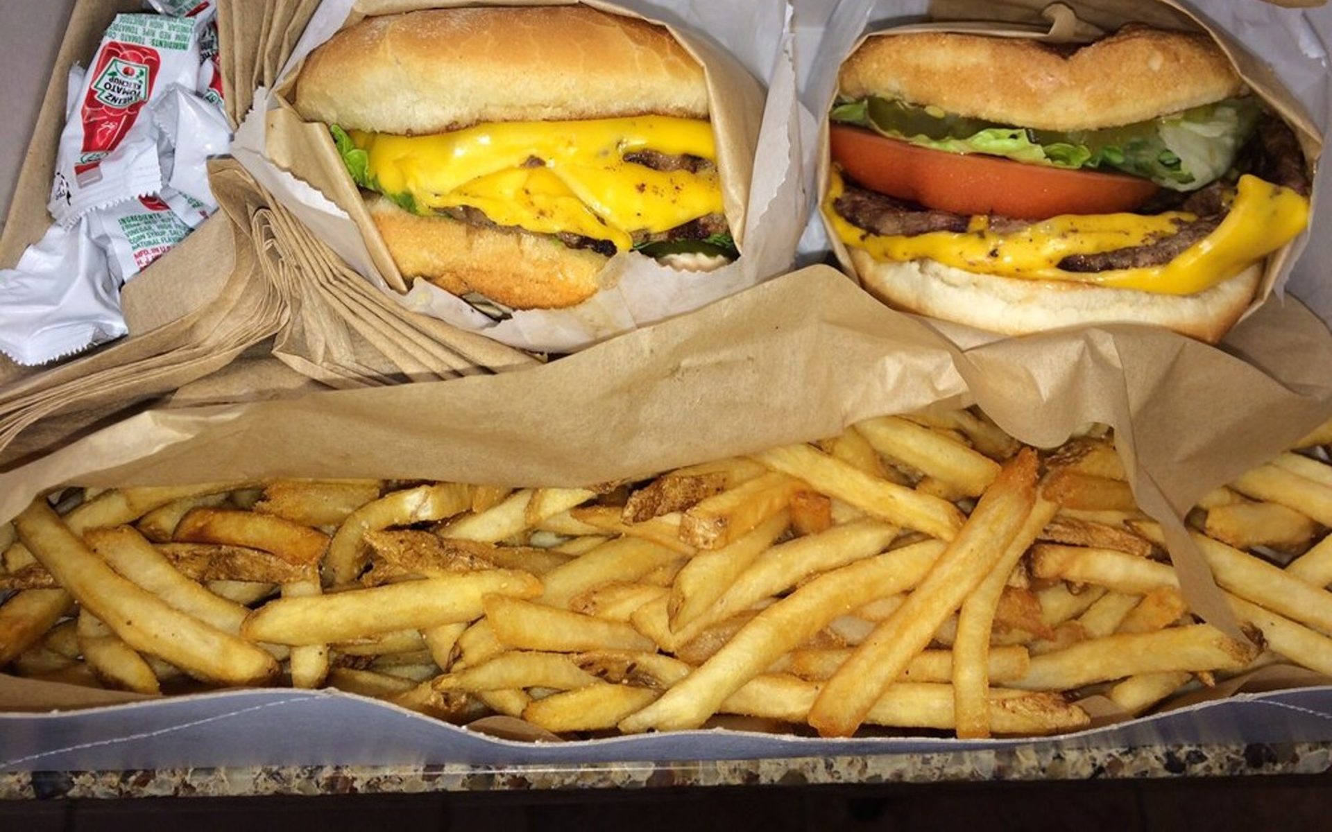 Very good food. Me and my children enjoyed bacon cheese burger combo, burger combo and a lamb Greek salad onion rings grilled cheese and chili cheese fries. Everyone was satisfied.